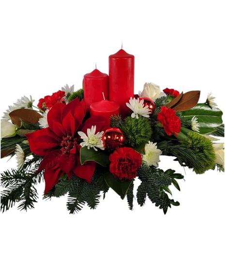 The perfect table centerpiece filled with holiday cheer around a bright, and welcoming candle.